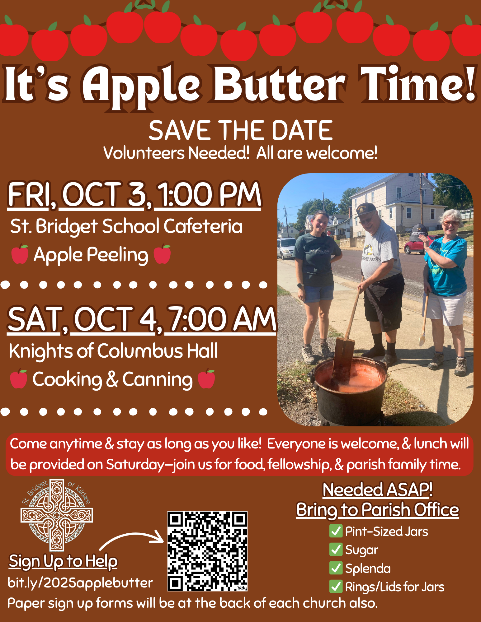 - Apple Butter Making - 1:00 PM - St. Bridget School Cafeteria