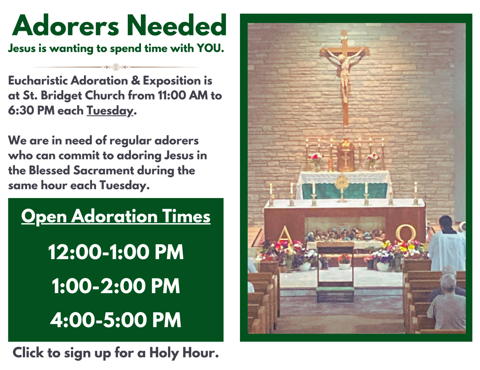 - Eucharistic Adoration - 11:00 AM-7:00 PM - St. Bridget