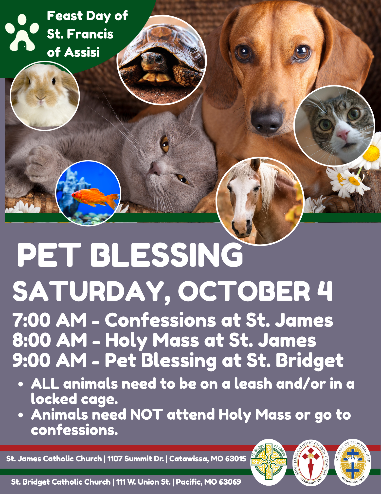 - Pet Blessing - 9:00 AM - St. Bridget