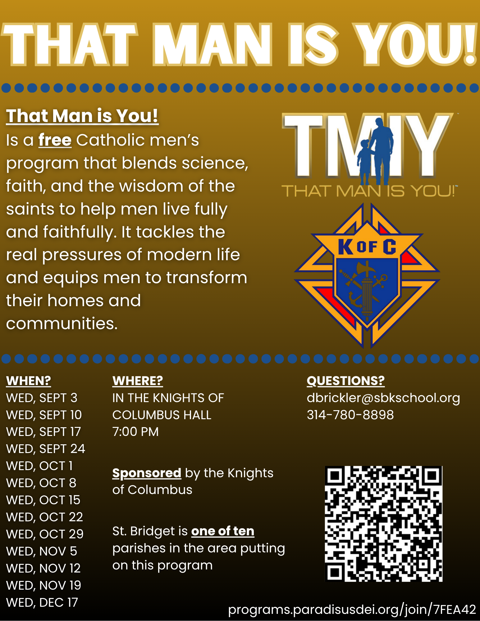 - That Man Is You (men's group - 5th meeting) - 7:00 PM - Knights Hall