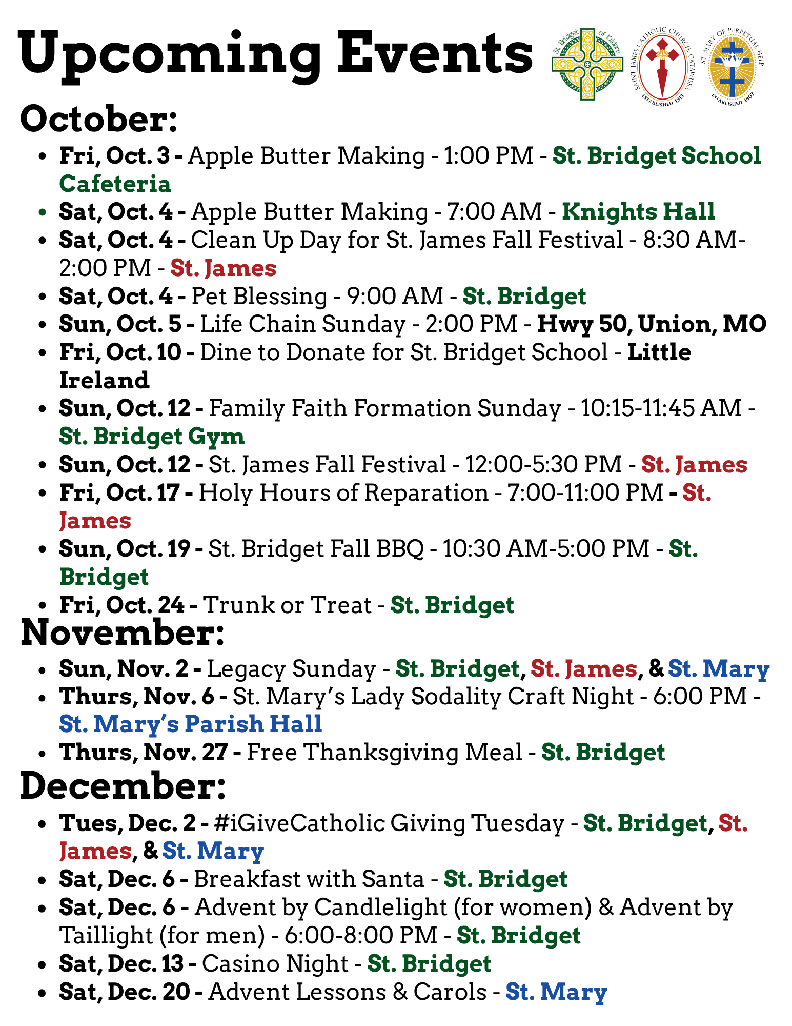 - Holy Mass (Vigil) - 4:00 PM - St. Bridget